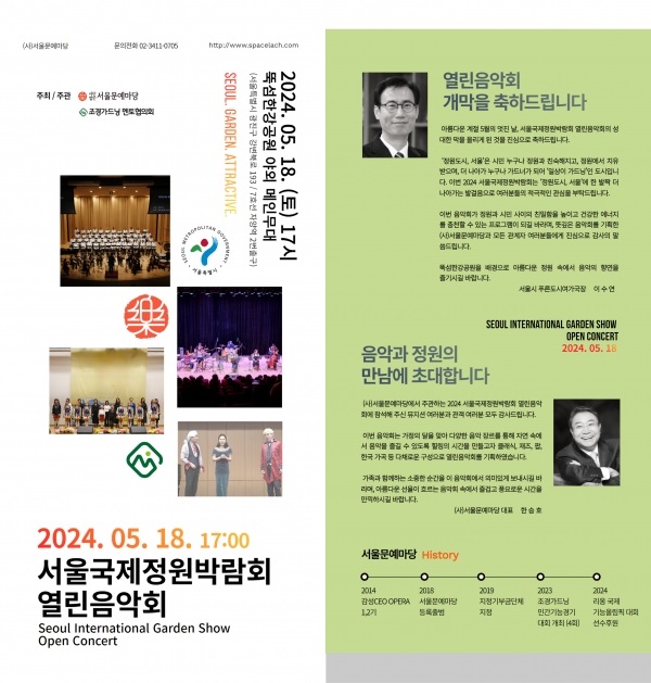 이번 음악회는 5월부터 10월까지 서울에서 열리는 '2024 서울국제정원박람회'의 일환으로, 다양한 음악 장르를 통해 자연 속에서 음악을 즐길 수 있도록 하고자 마련된 자리다.